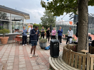 “Hoe heet je?” vroeg ik aan het dochtertje van mijn tegenstander, nadat ik net de baan was afgekomen. “Linde” zei ze. “Ah, dat is een bijzonder mooie naam, heel speciaal, want we staan ook nog onder een linde.” “Oh” zei de supporterende vrouw van mijn tegenstander en de moeder van Linde, “dat had ik mij helemaal nog niet gerealiseerd, dat linde ook een boom is.”